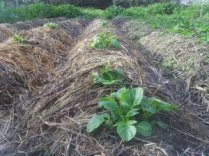 Nos gusta mucho más el primer sistema, más natural y económico, pero también puede realizarse este acolchado que consiste en colocar láminas de plástico microperforado o geotextiles. El acolchado sintético puede ser film de acolchamiento o tela de acolchamiento.